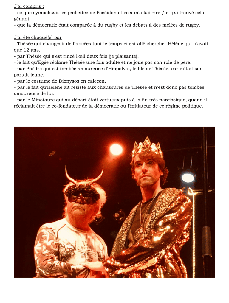 Depuis 4 ans, nous proposons des spectacles sur le thème de la mythologie, spectacles pédagogiques sous forme de comédies, formes hybrides qui se jouent des codes théâtraux, mêlant fiction et adresse au public, traversées tragiques et clins d’œil contemporains.